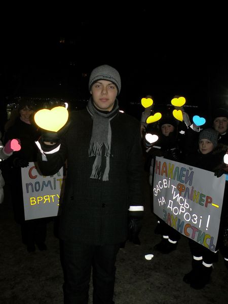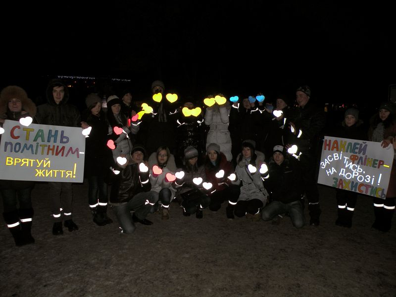 С участием школьников – в центре города, 10 января текущего года, было проведено флеш-моб акцию под названием “Стань заметным – спаси жизнь”. Ее участники призывали людей в темное время суток обязательно цеплять на одежду светоотражающие элементы.