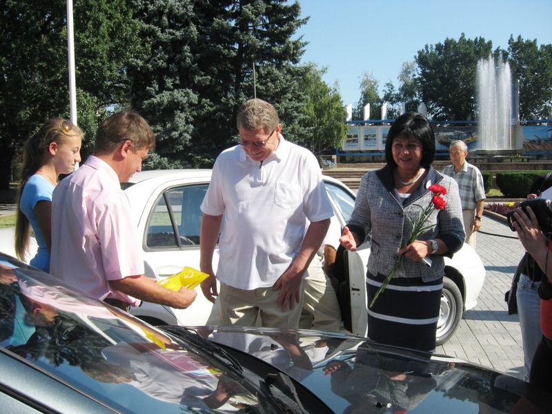В этот день бесплатно автомобили Geely (с обычным управлением) получили 4 инвалида Великой Отечественной войны. Один автомобиль Geely (с поражением обеих ног) за 30% стоимости получила семья Мандро, в которой воспитывается ребенок-инвалид.