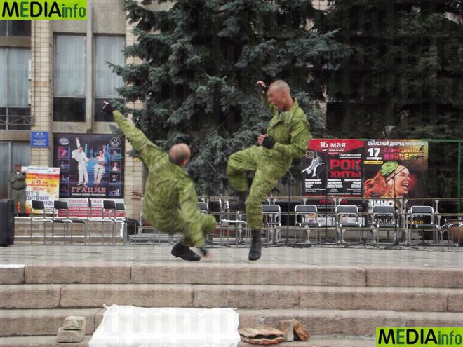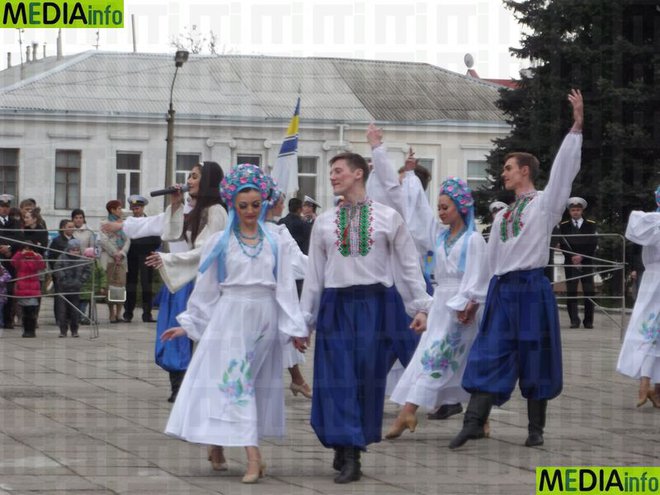 На площади собралось несколько тысяч патриотично настроенных горожан и гостей города, которые с благодарностью посмотрели на песенные и танцевальные номера в исполнении военных артистов.