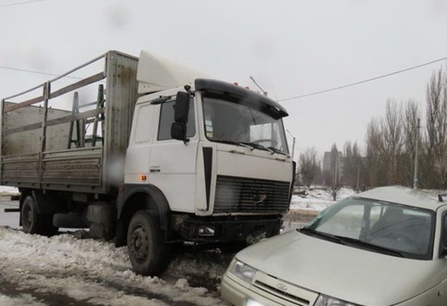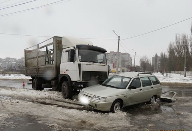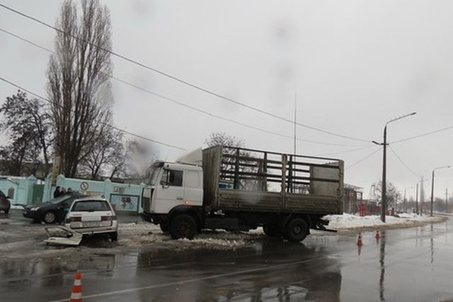 Автомобиль “Жигули” 12-ой модели выезжал на улицу Самойловича со стороны стоянки “ЭКО-маркета”. Пропустив автомобиль, двигающийся по Самойловича слева от него, водитель “легковушки” не обратил внимания направо от себя и, не заметив приближающийся грузовик MAN, выехал прямо к нему “под колеса”.