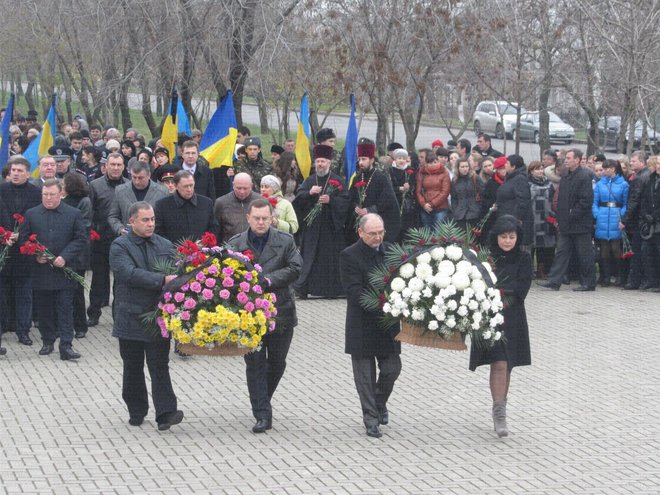 Затем местные чиновники, среди которых были в.о. мэра Николаева Юрий Гранатуров, вице-губернаторы Вячеслав Рукоманов и Наталья Иванцова, руководители правоохранительных структур, возложили к памятному знаку венки и цветы.