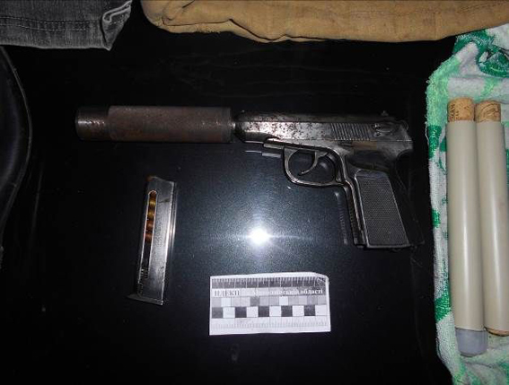 Во время проведения двенадцати санкционированных судом обысков правоохранителями выявлено и изъято – пистолет “ПМ” с глушителем калибра 9 мм, снаряженный патронами, ружье “MAVERIK 88 YNTETIK” 20-го калибра и боеприпасы, холодное оружие, наручники, арбалет, два пневматических пистолета с патронами к ним и электрошокер.