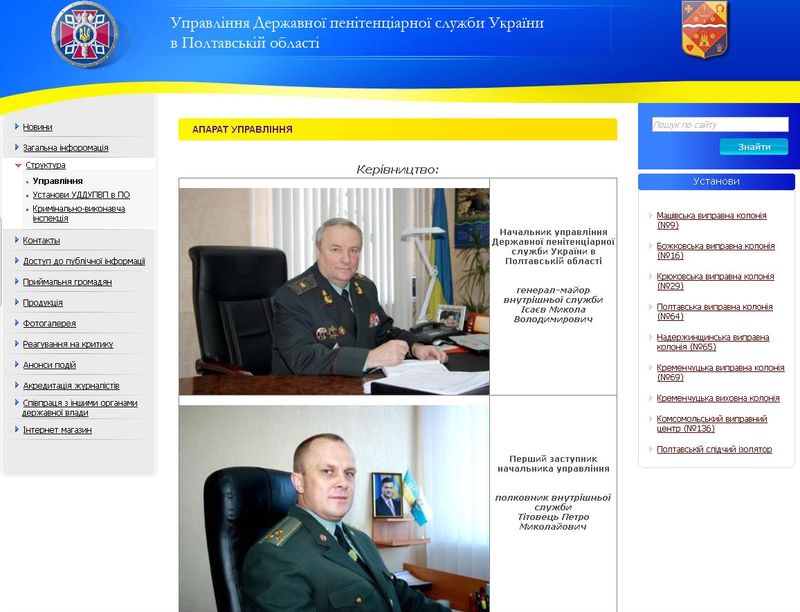 Официальный сайт Полтавского областного тюремного управления